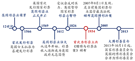 英國彩票業萌芽始于12世紀,它是歷史上最早發行彩票的國家之一。1569年英國首次發行國家彩票,收入用于修建公共設施。這被視為英國彩票業的正式開端。此后數百年歷史中,行業經歷了暫停與波折,最終于1934年出現第一部彩票方面立法,從此開啟英國現代彩票發展歷程。