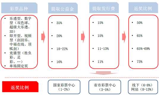 中國彩票產業鏈和各環節發行費分成比例