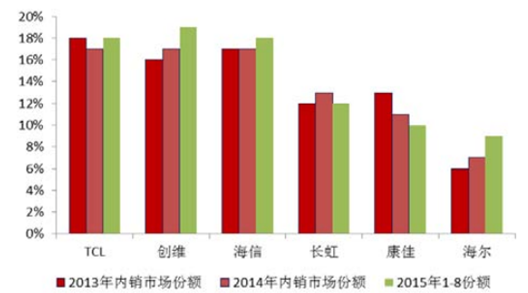 彩電國(guó)內(nèi)市場(chǎng)份額對(duì)比