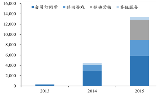 2014 年,全球手游市場規(guī)模 250 億美元,而整個中國游戲行業(yè)的生產(chǎn)經(jīng)營總收入也達到1520 億元人民幣。游戲作為互聯(lián)網(wǎng)最主要的變現(xiàn)模式之一,因其能豐富社交形式、增加用戶活躍時間與粘性,也同樣受到各大社交平臺的青睞,成為社交平臺重要的變現(xiàn)方式。
