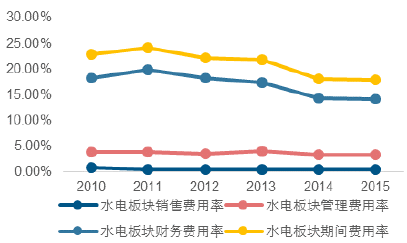 2011-2015年水電板塊折舊及財務費用情況(單位:億元)