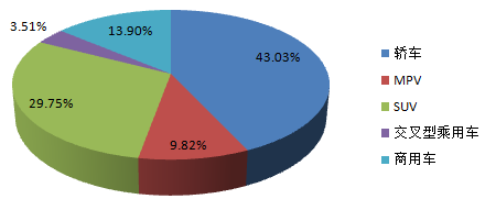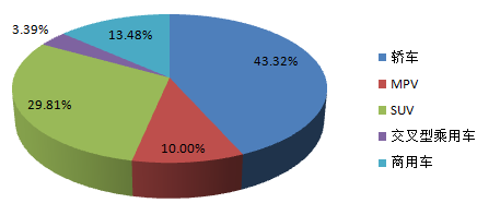 2016年1-4月中國汽車銷量分類型占比圖