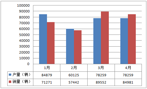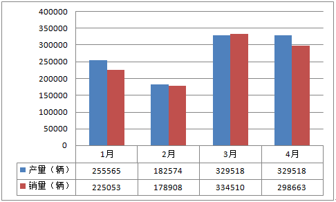 2016年1-4月中國商用車產(chǎn)銷表