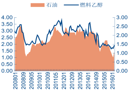 因此, 在玉米產量、 人用和飼用需求穩定的情況下,全球玉米仍有約 9000 萬噸過剩量,將壓制玉米價格向上空間。而如果國際油價在下半年或 2017 年出現大幅上漲,并拉動替代品燃料乙醇價格走高,則有望疊加玉米行業自身景氣的改善,助力國際玉米價格上行。