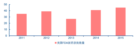2011-2015 年美國FDA 新藥獲批數量