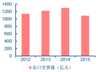 2012-2015 年醫藥制造業出口交貨值