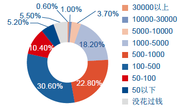 二次元整體用戶最近一年內(nèi)在ACG上的總花費(fèi)