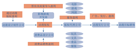 中國動漫行業已進入快速發展階段, 未來有望培育出更多的國產原創精品 IP,新媒體平臺的發展將凸顯渠道端價值。動漫行業主要收入來源是衍生品市場,擁有優質 IP資源的公司將掌握絕對議價權,具有長期投資價值。