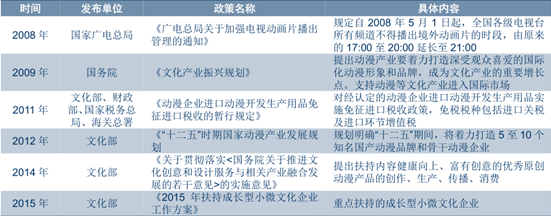 中國動漫行業的發展最早起步于上海美術電影制片廠,1957 年建廠后攝制的動畫片《神筆馬良》 、 《小蝌蚪找媽媽》等作品制作精良,取得了良好的反響。90 年代之后,以日本動漫為代表的海外作品大量涌入中國,使國產動漫一度失色。進入 21 世紀,為了提振國產動漫,國家推出了一系列扶持政策,包括動畫創作競賽、政府補貼及稅收減免、鼓勵衍生品經營等著力打造具有影響力的國際動漫品牌。在政策推動下,一系列國產精品動漫如《秦時明月》 、 《熊出沒》陸續問世,掀起收視熱潮。此外,全面放開二胎預計將使我國在未來 5 至 8 年再次迎來生育高峰,新增受眾有望推動產業持續發展。