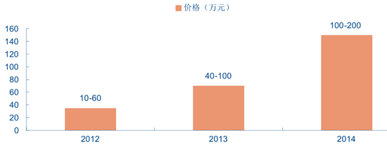 電視劇名稱作者上映時間豆瓣評分收視率網絡播放量(億次)《步步驚心》桐華2011年8.11.72%5.54《甄嬛傳》流瀲紫2011年8.91.09%69.80《何以笙簫默》顧漫2015年6.41.48%78.36《花千骨》唐七2015年6.42.21%68.68《云中歌》桐華2015年3.50.88%80.03《瑯琊榜》海宴2015年9.31.22%104.28近年來網絡小說版權均價變化