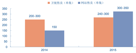 2014-2015 年大劇衛視售賣與網站售賣價格區間(單位:萬元)