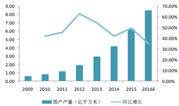 2009-2016年我國鋰電池隔膜產量(億平方米)