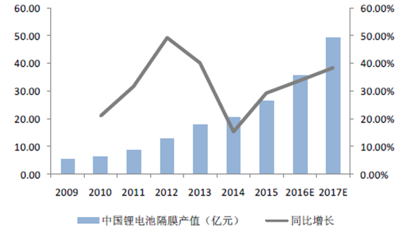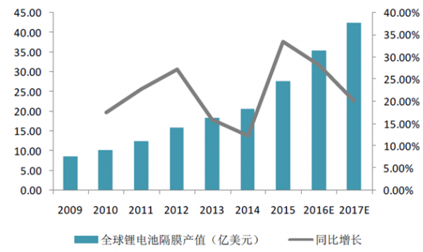 2016年中國鋰電池隔膜行業市場現狀分析及發展趨勢預測