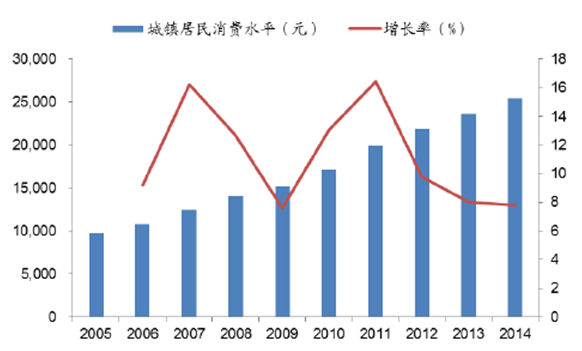 2005-2014年中國城鎮居民消費水平
