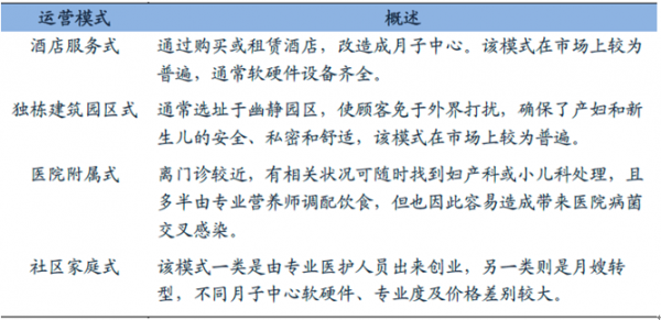 3、月子中心作為一個新興行業,從國家到地方暫時都沒有完善的相關法規和準入制度。因此,不同月子中心在區位環境、床位數量、人員素質等方面可能存在較大差異,從服務價格上的差距也能看出一二。目前,國內的月子中心主要包括酒店服務式、獨棟建筑園區式、獨棟建筑園區式和社區家庭式四種運營模式。