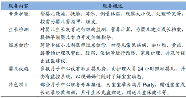 總而言之,我們認為,月子中心目前的市場潛力還遠未得到充分釋放,未來具有廣闊的市場發展空間。在競爭逐漸加劇的情況下,要在行業中長遠發展,則需著力培育自身的核心競爭力。對于月子中心而言,做好特色服務項目是彰顯差異化的途徑之一,如產后護理美容、月子餐、寶寶護理等增值服務,不僅能帶來可觀的盈利,又能打造月子中心特有的品牌優勢。