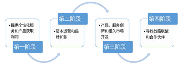 在企業不同的發展階段,月子中心的盈利模式存在一定差異:早期月子中心主要通過提供個性化服務和產品獲取利潤,在完成一定的資本積累后進行自身品牌擴張和資本運營。在發展至較為成熟的階段后,月子中心對其產品、服務創新和相關市場進行有效地開發,完善其母嬰產業鏈的構建。部分實力雄厚的月子中心還會與利益相關機構達成戰略聯盟,協同合作互利共贏,推動全行業的健康發展。