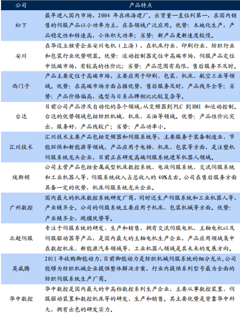 國(guó)內(nèi)外伺服行業(yè)主要企業(yè)特點(diǎn)對(duì)比: