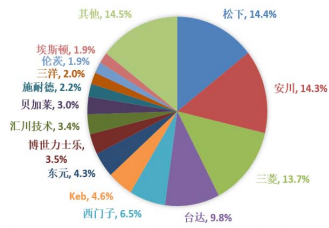 日系品牌占據(jù)了我國(guó)伺服系統(tǒng)市場(chǎng)一半的份額。目前,國(guó)外伺服企業(yè)在中國(guó)的市場(chǎng)占有率達(dá)75%,其中日本品牌占比為50%,其著名品牌包括松下、三菱電機(jī)、安川、三洋、富士等,產(chǎn)品特點(diǎn)是:技術(shù)和性能水平比較符合中國(guó)用戶的需求;歐美品牌占比 25%,美國(guó)以羅克韋爾、丹納赫、帕光等聞名,而德國(guó)則擁有西門子、倫茨、博世力士樂、施耐德等品牌。國(guó)產(chǎn)品牌占據(jù)了20%的市場(chǎng),其中內(nèi)地品牌和臺(tái)灣品牌分別占據(jù) 10%的市場(chǎng),中國(guó)臺(tái)灣以東元和臺(tái)達(dá)為代表,其技術(shù)水準(zhǔn)和價(jià)格水平居于進(jìn)口中端產(chǎn)品和內(nèi)地品牌之間;中國(guó)內(nèi)地的品牌主要有華中數(shù)控、廣州數(shù)控、埃斯頓、匯川技術(shù)等。