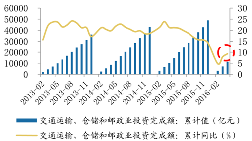 鐵路總公司公布2015年全年完成鐵路固定資產(chǎn)投資8238億元, 2016年鐵路計(jì)劃投資8000億。從以往的經(jīng)驗(yàn)來(lái)看,不出意外實(shí)際與計(jì)劃差別不大。這意味著2016年鐵路投資很難再有高增速。2016年公路和水路預(yù)計(jì)投資規(guī)模為1.8萬(wàn)億(非圖9、10口徑),這個(gè)數(shù)與15年基本持平。預(yù)計(jì)交通運(yùn)輸、倉(cāng)儲(chǔ)和郵政業(yè)投資難有高增速,可能與去年持平。未來(lái)增長(zhǎng)的亮點(diǎn)可能在機(jī)場(chǎng)建設(shè)、城軌建設(shè)上。