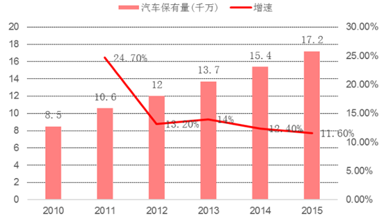 自 2010 年來,私家車成為規模化現象,我國汽車保有量以每年 1700--2500 萬輛的速度增長,截止到 2015 年底,國內汽車保有量突破 1.7 億,而按照一般規律,5-6 年是最常見的換車年限,有將近 2000 萬輛私家車或將進入流通市場。