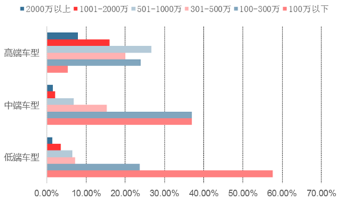 獨立二手車經銷商是目前國內二手車的主要渠道,占據 82%的市場份額。行業分散,數量眾多,規模參差不齊,有年營業額超過 2000 萬的大經銷商,也有年營業額在 100 萬以下的小經銷商。其中經銷商的規模越小,越偏向低端車型。 盈利水平也不平均, 毛利率從 3%到 10%以上不等。 其中小車商, 也即所謂的黃牛占絕大多數,雇傭工人數在 3 人以下的經銷商大約占了 66%。
