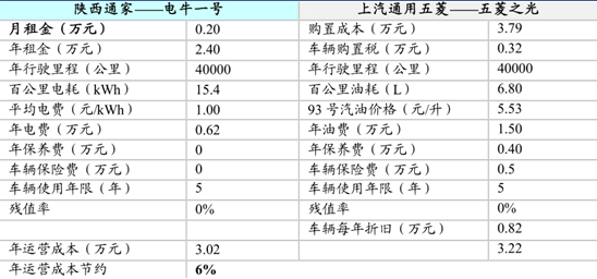 采用租賃方式電動物流車的年運營成本節約 6%