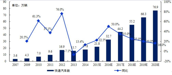 快遞用物流車保有量高速增長,每年有10~12萬輛新增需求