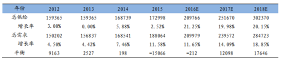 從歷史來看,2011年至2015年,受全球鋰電池出貨量從46.63GWh增長到100.75GWh帶動,對應(yīng)碳酸鋰需求量由3.65萬噸快速增長至7.33萬噸,四年復(fù)合增長率高達19%,其中15年電池級碳酸鋰需求量同比增長高達33%,接近鋰電池出貨量增長比例(不同電池對碳酸鋰的需求量有一定的差別,但幅度不大,從而使得碳酸鋰的需求增長速度略低于鋰電池的出貨增長速度)39%。經(jīng)過我們測算,預(yù)計未來三年受新能源汽車發(fā)展帶動鋰電池出貨量仍將以31.4%的復(fù)合增長率繼續(xù)增長,對應(yīng)電池級碳酸鋰需求也將保持在25%以上的比例。