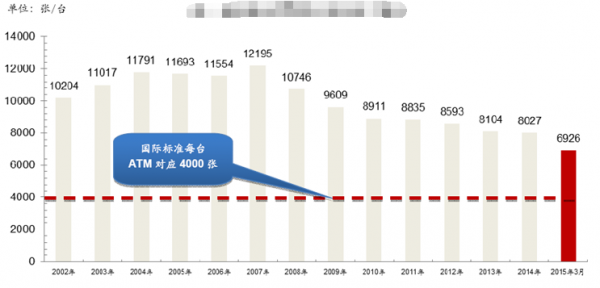 根據世界銀行2012 年底的統計數據,韓國以10 萬人共用282 臺自動取款機的高普及率超過了加拿大(205 臺)和葡萄牙(185 臺)。ATM 普及率排在4-7 位的分別是俄羅斯(182 臺)、美國(173 臺)、澳大利亞(166 臺)和西班牙(138 臺),日本和英國分別以128臺和124 臺名列第八、九位。截至2012 年底,我國每10 萬人共用的ATM僅為31臺;即使以2014 年年底的數據統計,該數字也僅提升至45 臺,與前述發達國家2 年前的數據仍有相當差距。