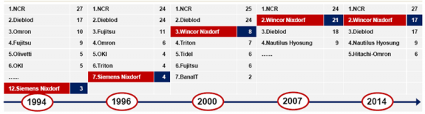 ATM廠商全球市場(chǎng)份額歷史變化情況(圖)