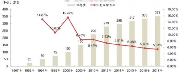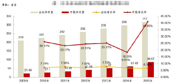 (2)新興市場(chǎng)的強(qiáng)勁需求成為近年來全球ATM 增長(zhǎng)的主要驅(qū)動(dòng)力全國(guó)ATM保有量趨勢(shì)圖