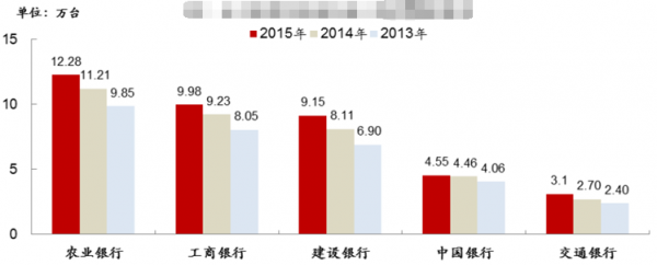 五大國(guó)有商業(yè)銀行近三年ATM保有量(圖)