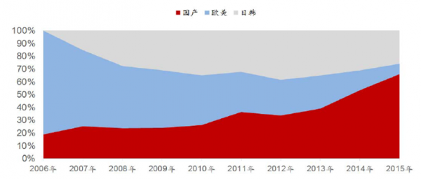 2006年-2015年我國(guó)ATM市場(chǎng)供應(yīng)份額占比趨勢(shì)(圖)