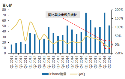 智能手機歷經多年高速增長后增速已經明顯放緩。存量時代下,當消費者的基本使用需求已被滿足,差異化的追求成為手機廠商的角力場。全球智能手機龍頭蘋果同樣陷入增長停滯,蘋果不久之前2016財年第二財季業績,其營收與凈利潤均比去年同期下滑。背板玻璃的差異化外觀,以及能夠為手機提供更多功能設計的優化空間,更能夠滿足手機同質化情況下消費者對新產品的需求,未來有望在更多品牌旗艦機型中得到應用。