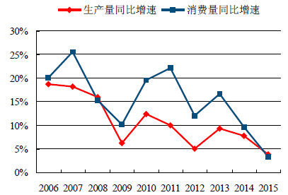 天然氣生產(chǎn)和消費(fèi)量年度同比增速