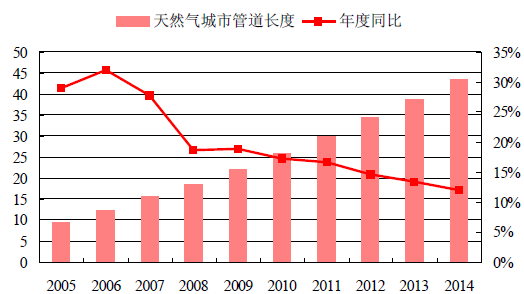 天然氣城市管道長(zhǎng)度(單位:萬(wàn)公里)