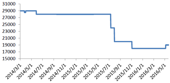 由于稀土供給明顯過剩,而全球需求平穩(wěn)增長,造成稀土價格持續(xù)下跌,稀土行業(yè)盈利水平持續(xù)下滑,進入2015年更是出現(xiàn)全行業(yè)整體虧損6億元,16年Q1繼續(xù)虧損0.9億元。