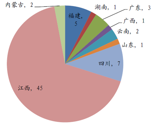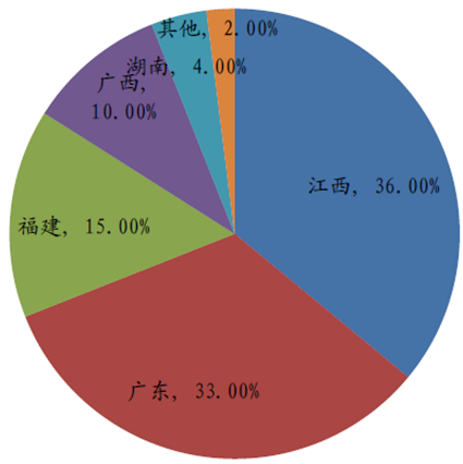 重稀土主要分布在我國南方的離子吸附型礦中,這些礦點比較分散,但大多分布于江西、廣東、福建和廣西四省中,占比達到94%。