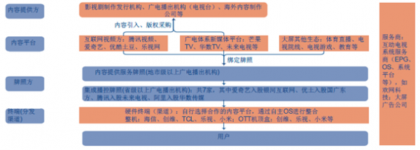 從微觀角度說,互聯網電視具備如下優勢:1)具有更加開放的內容生態:產業各方都可以做內容的提供者或運營平臺,從而吸引到了BAT這類巨頭每年數百億的資本投入,對人才的匯聚程度也更高;2)產業鏈關系更加簡單純粹:用戶通過互聯網終端直接獲取內容,除了公網互聯網外無需其他傳輸媒介或網絡。3)具有最領先的體驗:是電視機的“第一屏”且迭代升級快速,可以任意點播希望觀看的內容。