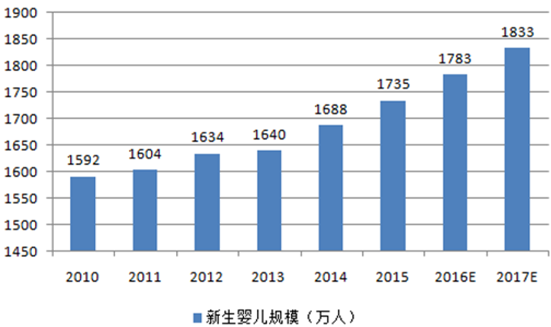 2015年10月26日至29日,在中國共產黨第十八屆中央委員會第五次全體會議審議通過了《中共中央關于制定國民經濟和社會發展第十三個五年規劃的建議》,提出“全面實施一對夫婦可生育兩個孩子的政策”。自2013年局部開放二胎政策以來,中國新生嬰兒數量就開始開啟了高速增長模式,我們預計伴隨著這次政策的全面實施,未來新生嬰兒數將保持甚至提高目前的高增長率。
