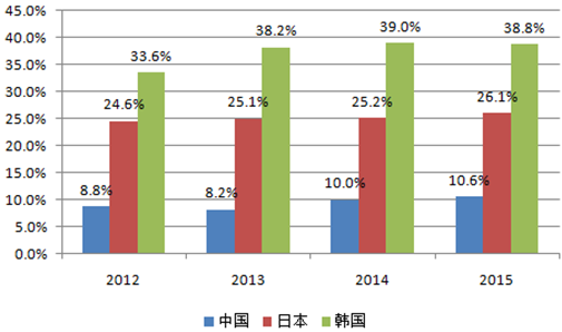 雖然目前國內童裝市場仍相對分散,但近年來已經漸漸展現出集中化的趨勢。2012年至2015年我國前十大品牌占有率一直在增加,從2012年的8.8%到2015年的10.6%。對比鄰國日本和韓國的成熟嬰童服飾市場,童裝消費通常呈現較為集中的市場結構,而處于成長期的我國童裝市場集中度連成熟市場的一半都沒有達到。因此,我們認為品牌化趨勢下的行業集中度提升是未來國內嬰童服飾的發展方向。