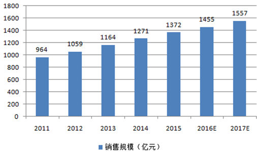 與男裝、女裝等服裝品類相比,我國童裝行業起步較晚。隨著我國家庭對童裝消費習慣的改變,國內專業童裝企業普遍于上世紀 90 年代中期以后開始發展。從產業生命周期的角度來看,我國童裝行業尚處于成長期階段,具有市場需求增長迅速、成長空間加大的特點。近些年來,我國的童裝消費規模不斷擴大,且保持著較高的增長率。2015年我國童裝市場規模達到1372億,增長率達到8%,隨著二胎開放和消費升級,預計到2017年市場規模將突破1500億。