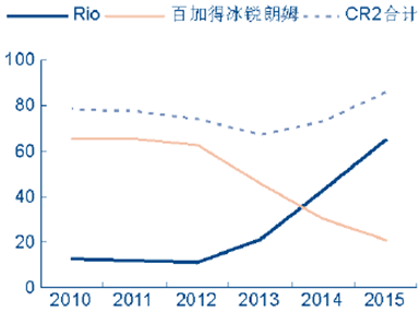 核心提示:2015 年預調酒繼續保持增勢,全年銷量191 百萬升,同比增加61.55%,但增速較2014 年高點下降78.45pcts。預調酒行業市場集中度高,2015 年CR2 達86%,同比上升12.8pcts,其中Rio 市場份額達65%。行業2015 年預調酒繼續保持增勢,全年銷量191 百萬升,同比增加61.55%,但增速較2014 年高點下降78.45pcts。預調酒行業市場集中度高,2015 年CR2 達86%,同比上升12.8pcts,其中Rio 市場份額達65%。行業龍頭百潤股份2015Q4 收入1.53 億元,虧損2 億元;2016Q1 收入2.16 億元,虧損6357 萬元,已望連續兩個季度虧損。環比來看,2015Q1/2015Q2 收入均超8 億元,2015Q3收入5.10 億元,2015Q4 收入1.53 億元,2016Q1 收入2.16 億元。2016 年成都春糖會上2015 年風靡的預調酒幾乎遁形,使市場對青春小眾酒預調酒的發展趨勢引起擔憂。我們認為百潤股份的前景仍需看兩新品上線后的拓展情況。公司2016Q1 末、2016Q2 初已推出兩個系列新品:本味系列和強爽系列。其中本味系列酒精度5 度,主推275 瓶裝,與炫彩瓶不同,主打原色,首推西柚和檸檬兩種口味;8 度強爽系列主要針對飲酒人群,主推500ml易拉罐,輔推300ml 小罐,首批有卡曼橘和西柚兩種口味。新品瓶裝定價不變,罐裝比原大罐裝貴1 元,已開始大規模生產,3 月底開始鋪貨,4 月底完成全國鋪貨,2016Q2 將大力度推廣。新品推出拓寬覆蓋人群,但接受度和動銷情況還待觀察。此外,老品也將繼續推進升級。