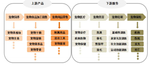 由于寵物能夠緩解人類壓力,改善人類健康,愈發得到人類的廣泛喜好。隨著人類生活水平的提高,在寵物數量不斷增加的同時,其生存質量也不斷提高。人類為自己的寵物購買食品、服裝、附屬用品,接受醫療、美容、馴養等服務,由此形成了蓬勃發展的寵物產業。寵物產業是指所有與寵物相關的行業, 寵物產業鏈包括寵物飼養、 寵物食品、寵物用品、寵物醫療、寵物美容、寵物培訓、寵物保險以及寵物善終等。