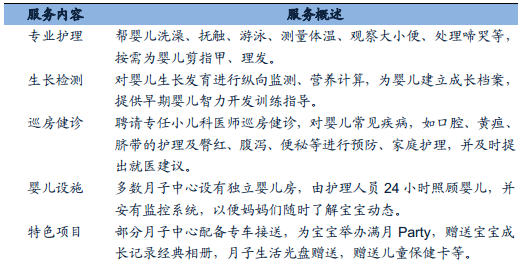 總而言之,我們認(rèn)為,月子中心目前的市場潛力還遠(yuǎn)未得到充分釋放,未來具有廣闊的市場發(fā)展空間。在競爭逐漸加劇的情況下,要在行業(yè)中長遠(yuǎn)發(fā)展,則需著力培育自身的核心競爭力。對于月子中心而言,做好特色服務(wù)項目是彰顯差異化的途徑之一,如產(chǎn)后護(hù)理美容、月子餐、寶寶護(hù)理等增值服務(wù),不僅能帶來可觀的盈利,又能打造月子中心特有的品牌優(yōu)勢。