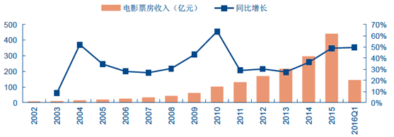 2002-2016年一季度中國國內票房