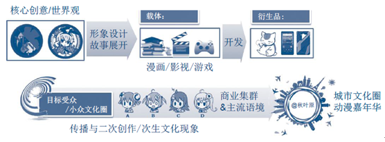 2、ACGN(Animation/Anime、Comic、Game、Novel)是ACG文化的自然延展,是動畫、漫畫、游戲、輕小說的總稱。由于早期都是以二維圖像構成,所以又被稱為是“二次元世界”,簡稱“二次元”。隨著時間的推移帶來的代際觀念替代,這一發源于日本,憑借網絡新媒體高速傳播和滲透的亞文化現象,正開始從主流文化產業的“局外人”逐步走入核心視野,也為企業創造了未來發展的絕佳商機。