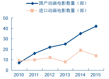 反觀國內,雖然近年來,國產動畫電影在數量上屢創新高,但票房增長卻相應滯后。低幼和粗糙的作品依然充斥市場。2015年國內動漫電影的TOP10中僅有3部國產作品,大量的市場份額被進口電影占據。