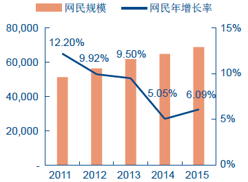 2011-2015年中國互聯網網民數量(單位:萬人)
